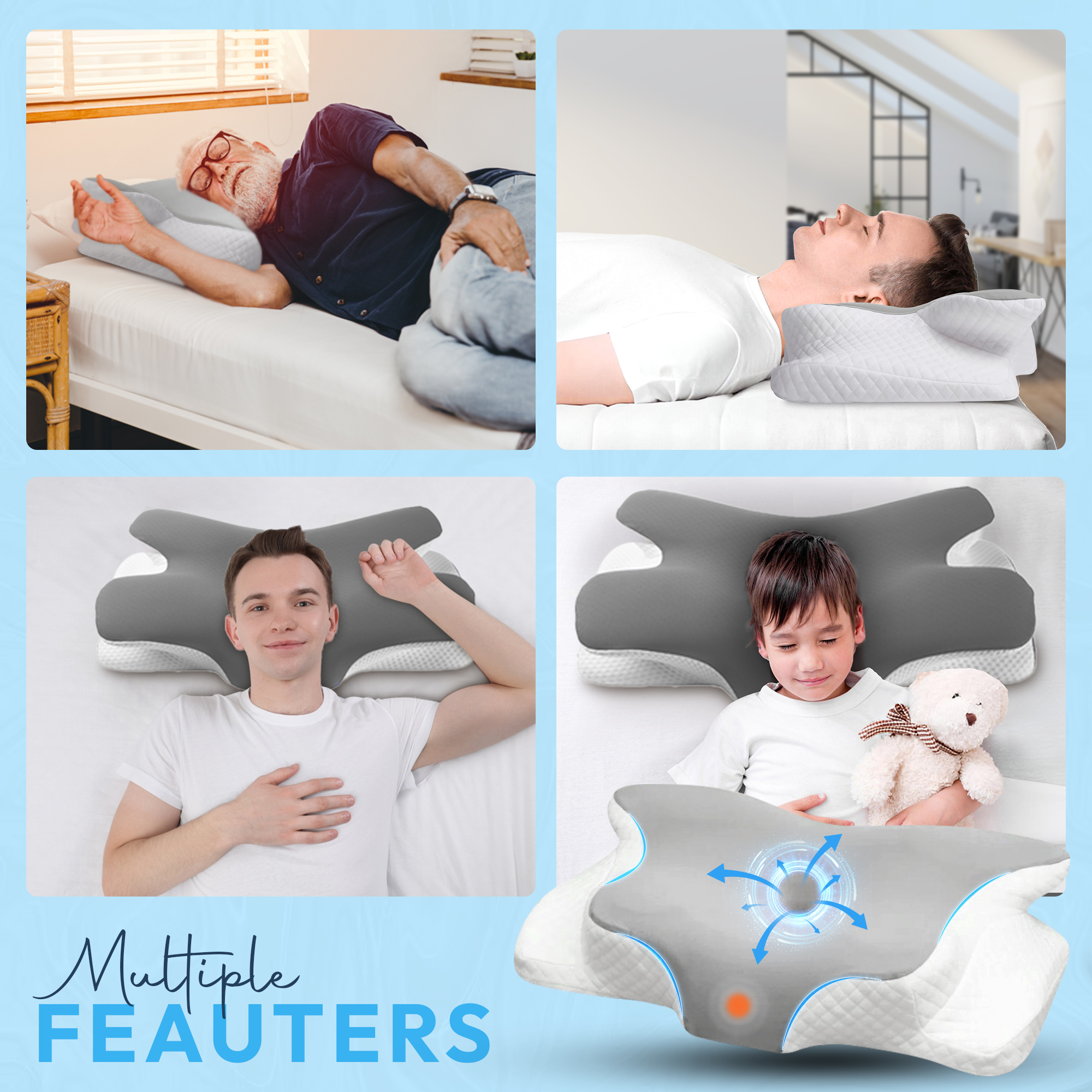 Nixgen Cervical Memory Foam Pillow – Premium Orthopedic Support for Pain-Free Sleep Experience lasting relief from headaches, neck pain, and shoulder tension with the Nixgen Cervical Memory Foam Pillow. Designed by orthopedic experts, this ergonomic pillow contours to your cervical spine, aligning your head, neck, and shoulders for deep, restorative sleep. The medical-grade memory foam provides firm yet gentle support, reducing pressure points and promoting proper spinal posture—ideal for side, back, or stomach sleepers. Certified for insomnia relief, this pillow adapts to your body’s natural curves, offering targeted support to alleviate nerve compression linked to migraines. The breathable, hypoallergenic foam ensures all-night temperature control, preventing overheating even in warmer climates (مخدات نوم مثالية للطقس الحار). Use it as a travel pillow, pregnancy body pillow, or daily neck support—its lightweight design suits home, hotel, or car journeys. Chiropractors recommend this cervical pillow for its therapeutic benefits, mimicking the spine’s natural curvature to correct posture. The removable, machine-washable cover maintains hygiene, while the durable foam retains its shape for years. Compared to traditional Tempur or hotel pillows, it balances softness and firmness, catering to hot and cold sleepers (مخدة طبية للرقبة تدعم الراحة خلال النوم). Why UAE Customers Love It: User-friendly design for diverse sleeping styles (مخدة طبية للرقبة تناسب جميع أوضاع النوم). Ventilated foam ideal for UAE’s climate (مخدات نوم مريحة للطقس الدافئ). Upgrade to a pillow trusted by physical therapists and designed for chronic pain relief. The Nixgen Pillow is your key to waking up refreshed, free from stiffness and fatigue.